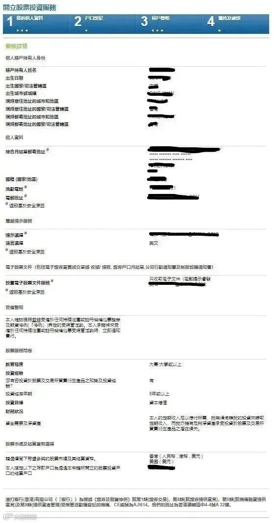 - 填写详细资料,并选择开通港股、美股或两者同时开通;