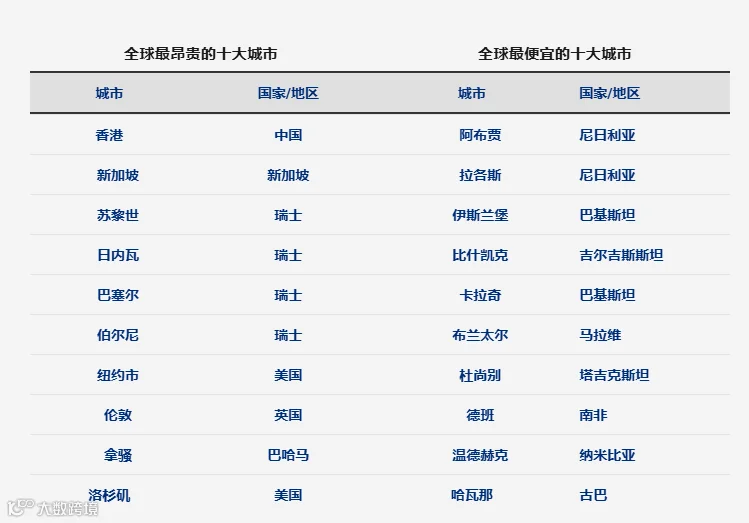 图源:美世《2024年全球生活成本排名》
