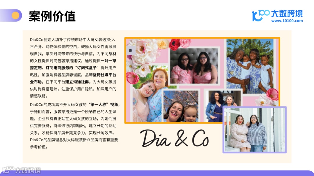Dia&Co的成功源于站在大码女性的视角,关注她们的真实需求,并通过持续服务和内容输出建立长期互动关系。这种品牌理念为新兴大码服装品牌提供了重要参考。