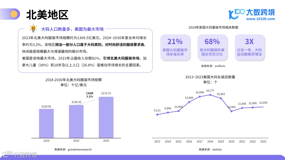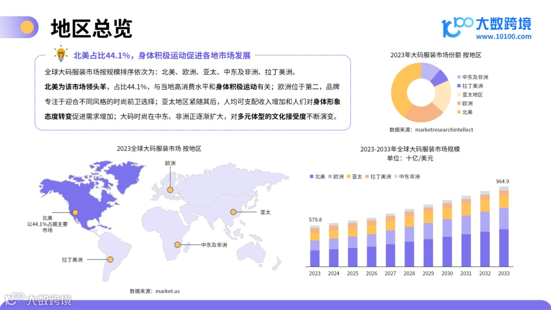大数跨境(10100.com)还将分析亚太地区和其他新兴市场的大码服装市场现状,如需获取完整报告,关注【大数跨境】公众号,回复【2025大码服装市场洞察报告】下载。
