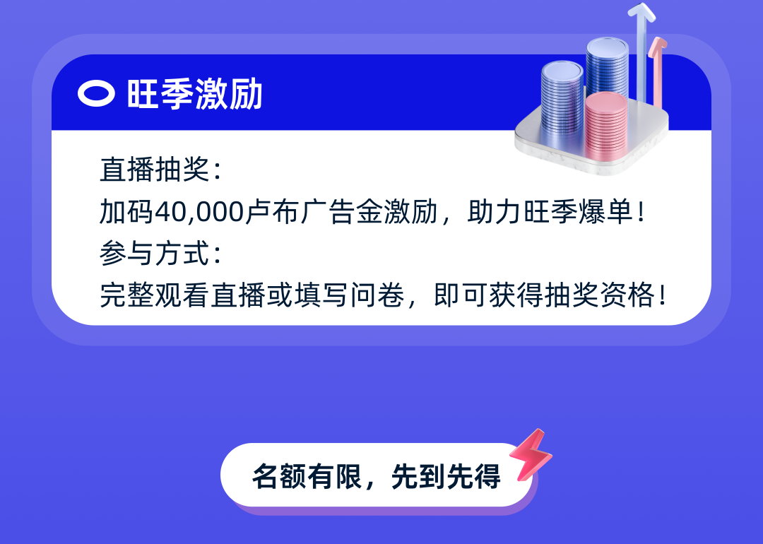 7天2节旺季限定课,再抽40000卢布广告金,引爆大促!