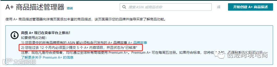 - 过去12个月内至少有5个A+页面内容项目审核通过