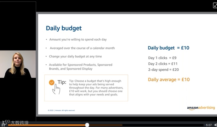 所以上图中的PPT的案例也就很好理解了,每日预算10英镑,第一天花了9英镑,第二天花了11英镑,2天一共20英镑