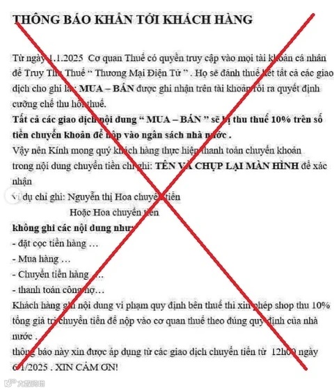 近日,一则通知在社交网络上引起广泛关注,通知声称自2025年1月1日起,越南税务机关有权访问个人账户,并收取电商交易税,每笔“买卖”转账要征10%的税。