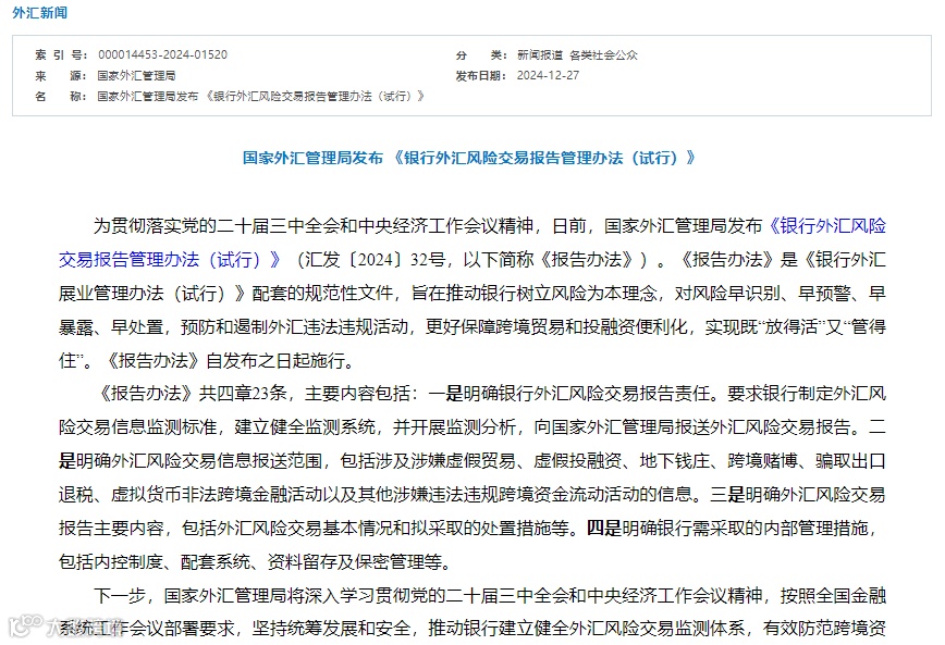 随着全球经济形势的变化和跨境贸易的日益频繁,国家外汇管理局在2024年12月推出了一系列针对银行外汇业务的改革措施,旨在提高外汇展业的效率与安全性。这些改革不仅包括政策的调整,还有配套法规的出台,为银行外汇业务的发展提供了更加清晰的方向和规范。