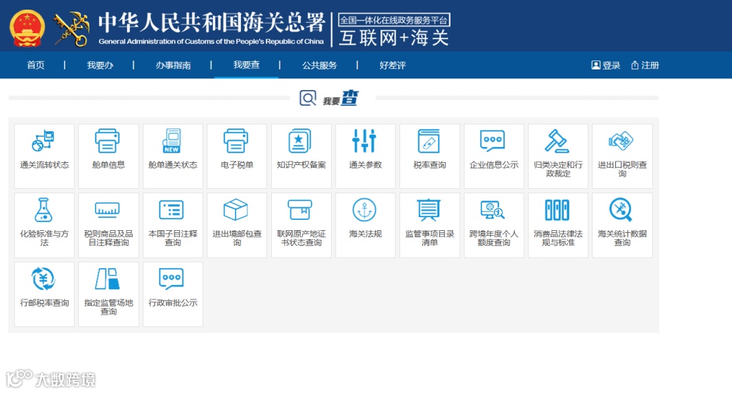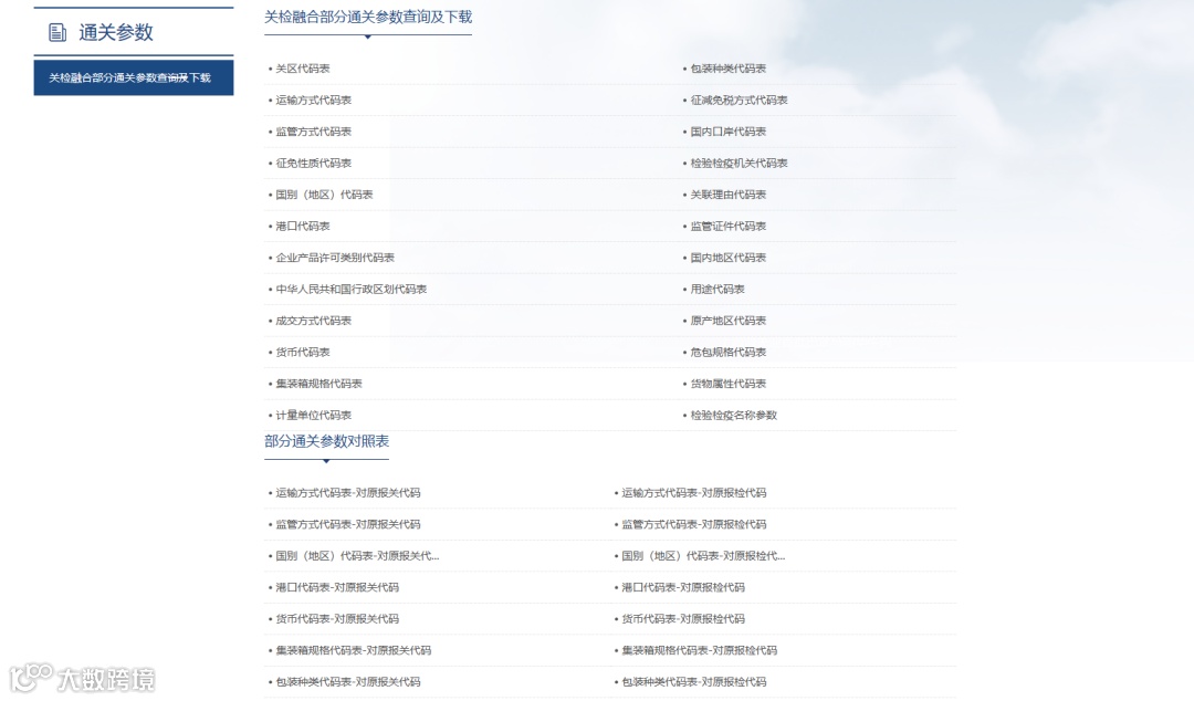 登录中国海关官网(http://online.customs.gov.cn/)。在网站的 “我要查” 栏目中,选择 “通关参数” 下“关检融合部分通关参数查询及下载”即可查询“监管证件代码表”“监管方式代码表”等信息。