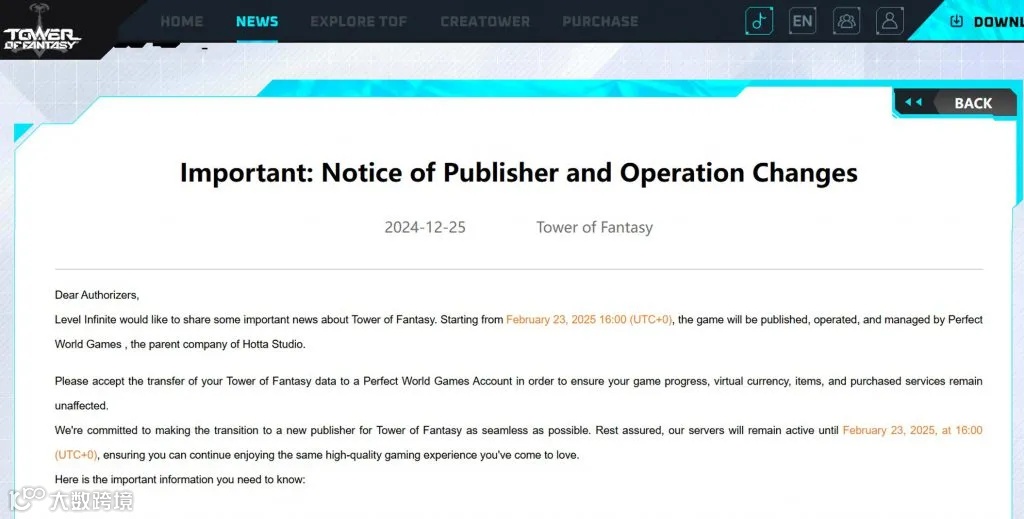 2021年12月国内公测的《幻塔》是当前4款重点开放世界游戏中表现最糟糕的,上个月流水仅为340万,下载量为6万。孤陋偏逢连夜雨的是上个月25号,该作国际服运营商腾讯旗下Level Infinite宣布将把游戏国际服的发行、运营全部交还给完美世界自己负责,账号数据转移工作也将从12月27日开启,而这与《幻塔》当下不佳的表现直接挂钩。