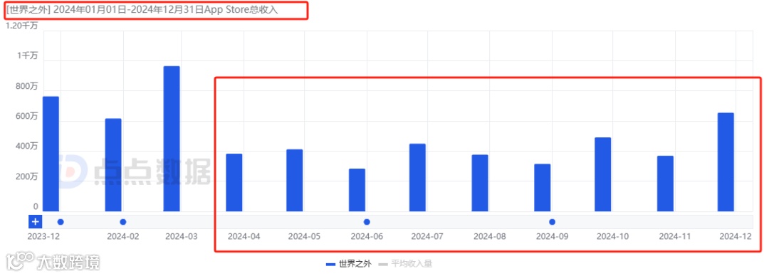 与《恋与深空》同期上线的《世界之外》则是新格局中TOP2的产品,其仅上线了国服,首月流水为8520万其实低于《如鸢》国服首月的1.11亿,但该作自测试三个月后,月流水便开始稳定,没有明显下滑的趋势,上个月其流水为4740万,对比首月损失仅50%,然而同一时间《如鸢》国服仅为2640万。2024年该作累计流水4.4亿,超过旧格局中的所有乙游。