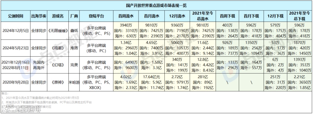目前国产开放世界重点游戏仅《无限暖暖》、《鸣潮》、《幻塔》以及《原神》4款,除了《幻塔》选择先国内再出海的发行节奏外,其他3款游戏全部遵循全球多平台同步发行的策略。