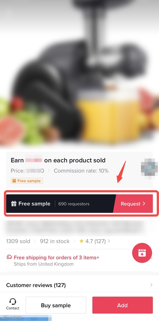 设置完成后,达人会看到申请样品按钮