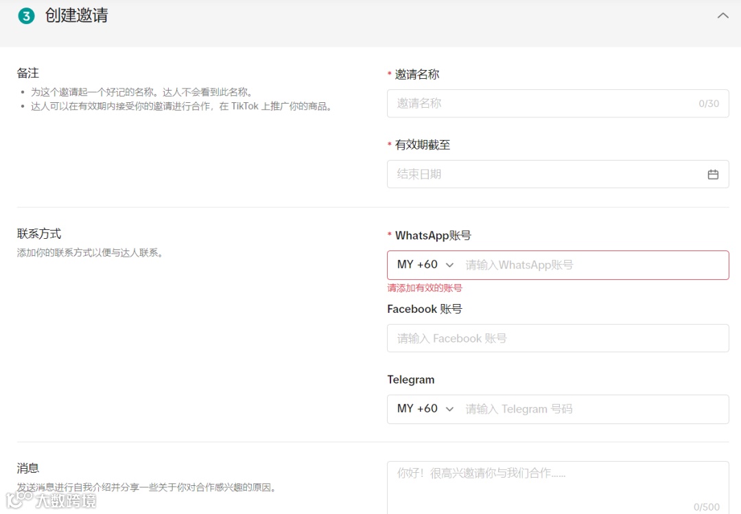 发送邀请消息