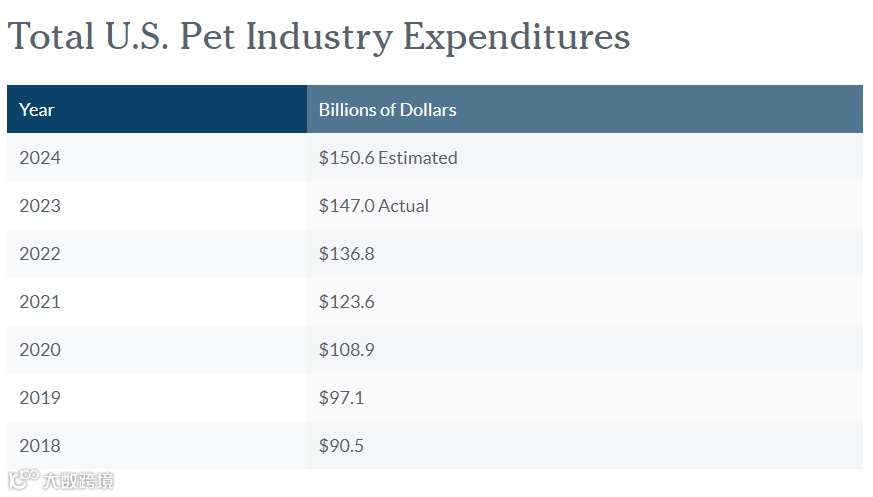 在欧美地区,养宠热更是一股潮流。目前美国家庭养宠率已经接近70%,且多宠物家庭比例正不断上升。美国宠物产品协会(APPA)的数据显示,截至2022年,约有8690万个美国家庭在养宠,宠物市场的消费总额达到1369亿美元。