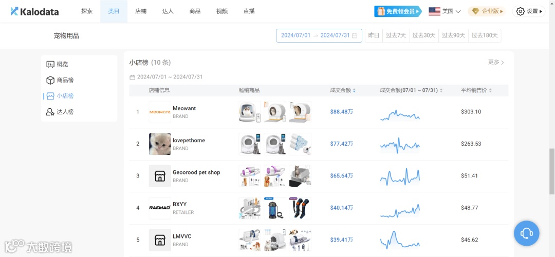 Meowant 小店在 7 月份的宠物用品类目中取得了显著的成就,以 88.48 万美元的成交金额位居榜首,相当于 640 万人民币。这一成绩凸显了 Meowant 小店的市场竞争力,让我们一起看看它成功背后的秘诀?