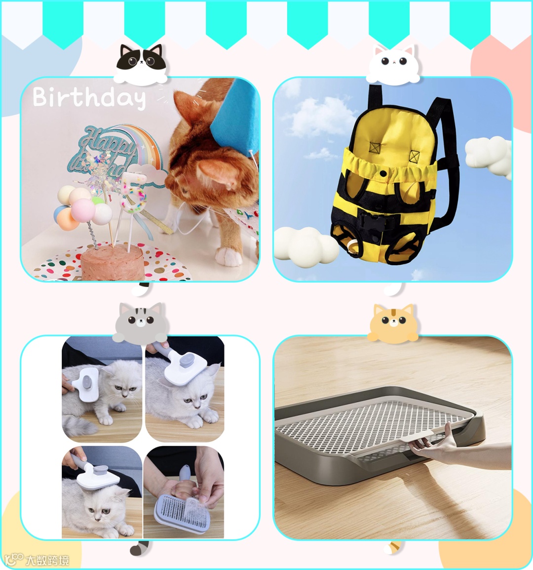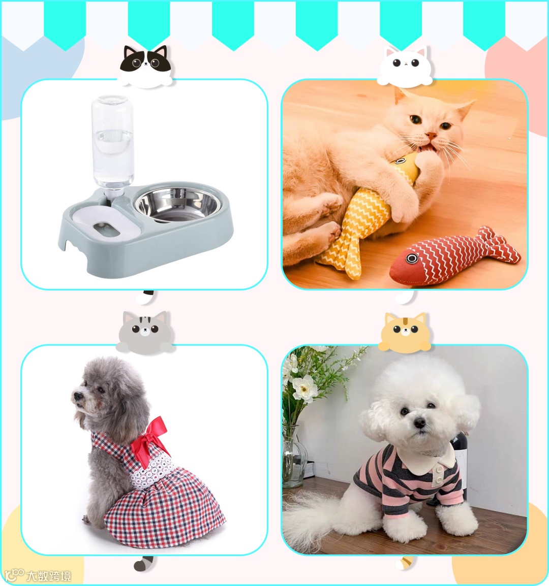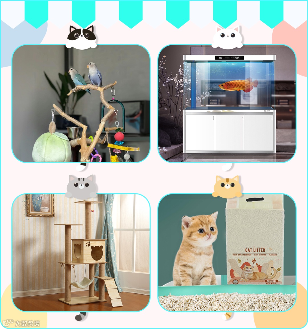 宠物美容和卫生用品(如猫砂、宠物香波、净水过滤器、水族箱水泵)、住房相关物品(如笼子、鱼缸、水族箱、玻璃容器)、玩具(如鸟类的站杆、定制游乐站架)及宠物药品,都是受欢迎的商品。