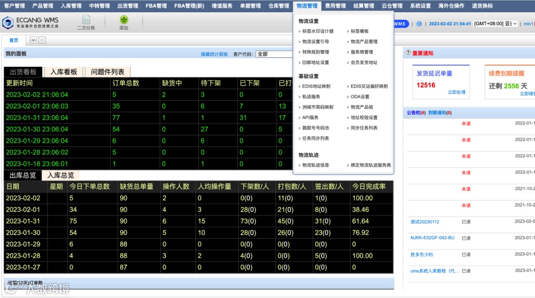 市面上主流的做法有两种,一种是将基础数据的分发放在WMS中,另一种做法是将基础数据的分发放在单独的一个系统,例如公共数据平台或者运营管理系统中。例如海外仓SaaS WMS领域中的老大哥——易仓WMS就是选择将基础数据放在WMS中,WMS中除了作业相关的数据,还有仓库,客户(货主),物流,地址,产品,费用等模块。