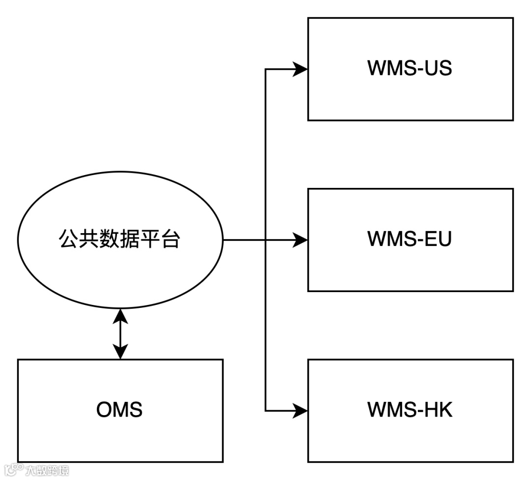 另一种做法是将基础数据的分发放在单独的一个系统,例如公共数据平台或者运营管理系统中,然后由公共数据平台对外提供统一的调用接口或者分发接口。我所经历的两家公司都是用的这种方式,据我了解“递四方(4PX)”的WMS也是用的这种解耦的模式。
