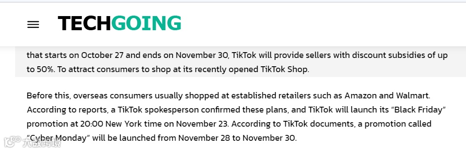 TikTok Shop已经在美国、英国、沙特市场发起了全年最大规模的活动——黑五网一大促,据相关报道,为了吸引卖家参与到“黑色星期五”购物节,将为卖家提供高达50%的折扣补贴。