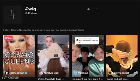 在 TikTok 上,含 #wig 话题量的浏览量高达 164+ 亿次。此外,#wigs 和 #wighair 也拥有极高的播放量,分别突破 75 亿次和 25 亿次,可见假发在 TikTok 上的流量和曝光度是有多夸张。