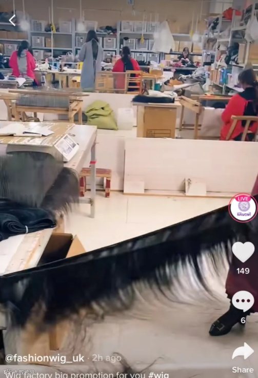 目前已有不少的假发工厂和卖家在TikTok上面进行直播带货、视频带货。在短视频的呈现形式上,一部分主要通过拍摄假发生产过程、生产环境等,展示工人制作流水线、工人打包、货仓厂房、老板演示等场景,都可以增加用户对商家实力的信任度。