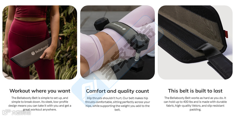 Believe Pursue LLC 是一家专注于健康和保健产品的公司,提供全方位的服务,包括产品构思、设计、开发、制造、供应链管理、技术绘图开发、质量保证以及市场投放等。Bellabooty的健身腰带,是一款锻炼臀部的健身腰带,可以与哑铃、壶铃或盘子一起使用。腰带内置防滑衬垫,提供比杠铃更好的平衡,帮助健身爱好者完成弓步、臀桥、深蹲等负重训练。Bellabooty腰带安装简单,拆卸方便,可以随身携带,实现随时随地进行全身锻炼。