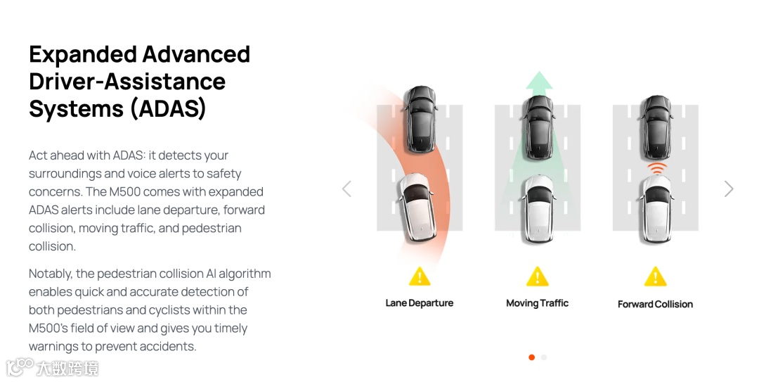 除了上述的核心功能以外,70mai的这个M500还搭配了ADAS(高级驾驶辅助系统,可以检测车辆距离周边物体的距离...)和内部储存以及胎压监测。