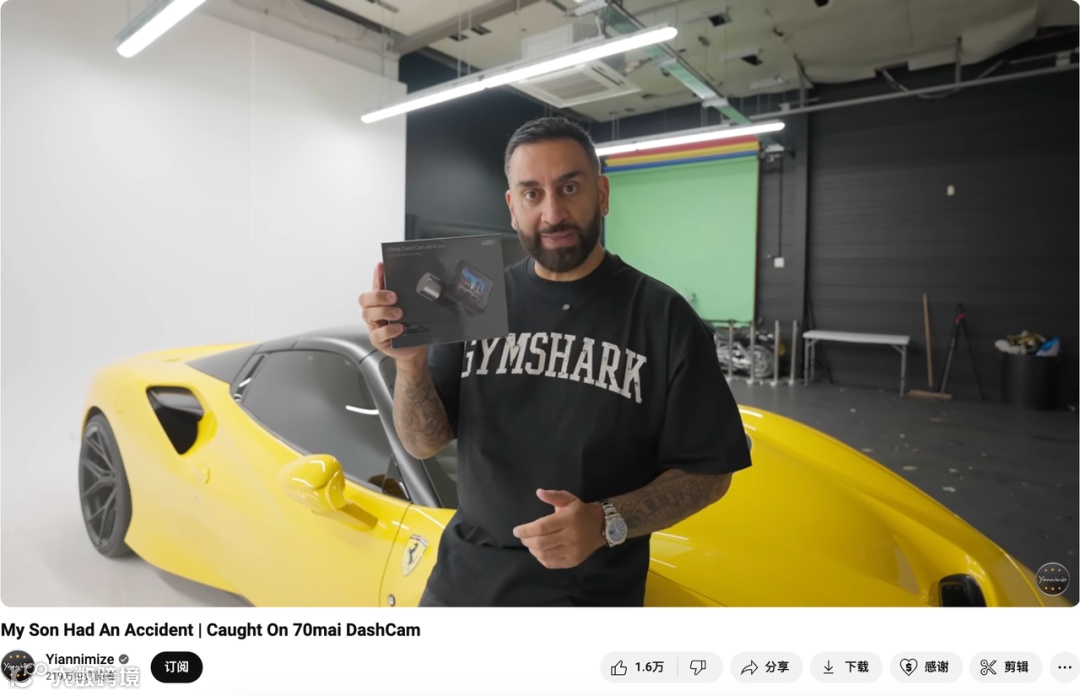 得益于自身的专业性以及豪华车、跑车的吸睛属性,目前Yiannimize频道收获了219万个订阅,是YouTube汽车领域的头部博主了。因此,在SocialBook看来,70mai和该频道的合作是非常契合的。