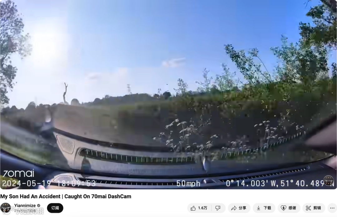 值得一提的是,Yianni并没有因为合作的原因让他的儿子故意去出车祸(那样成本太高了),而是在使用70mai产品的期间,他的儿子恰好的、真实的发生了一起事故!