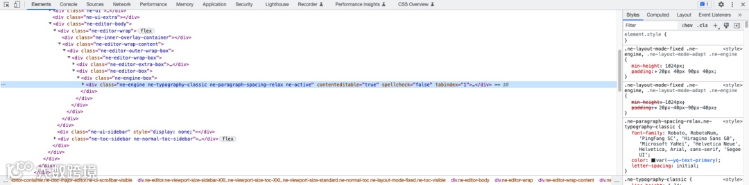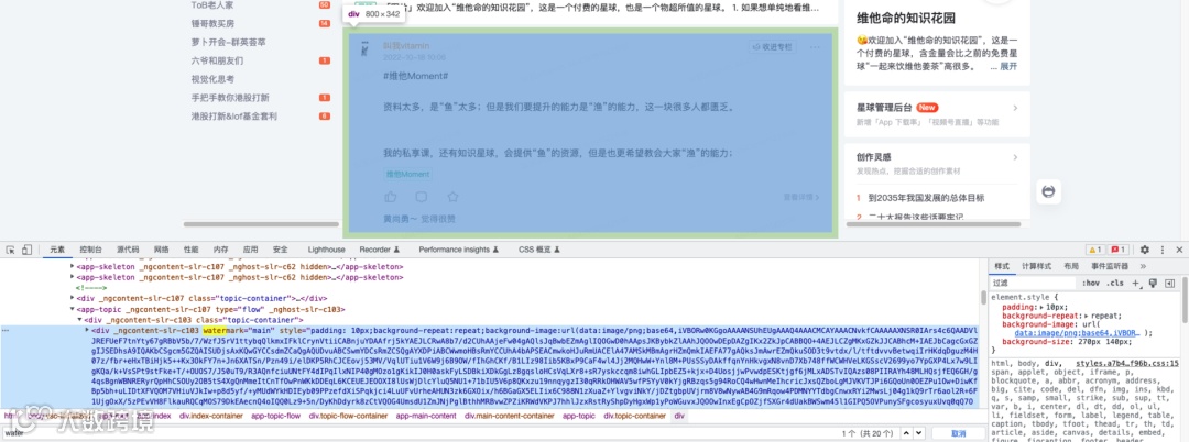 找到有水印的部分,然后观察它的元素内容,如果想要快速查找可以按CTRL+F,然后输入“watermark”,因为一般的水印的样式都会用“watermark”或者“mark”之类的。找到了之后发现水印就是一些铺底的图片,然后右侧勾选掉图片的展示,图片就去掉了,这个时候再截图就不用担心泄露信息了。