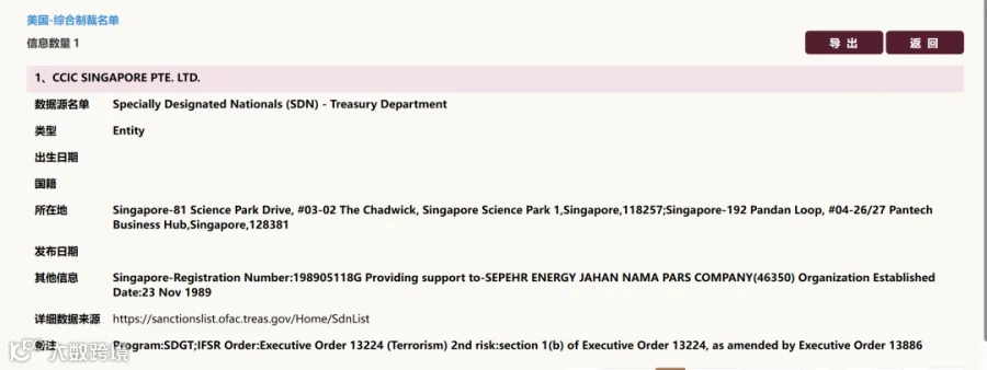 此次制裁属于“二级制裁”,意味着任何与中检新加坡进行交易的第三方都可能面临美元结算受限或在美资产被冻结的风险。