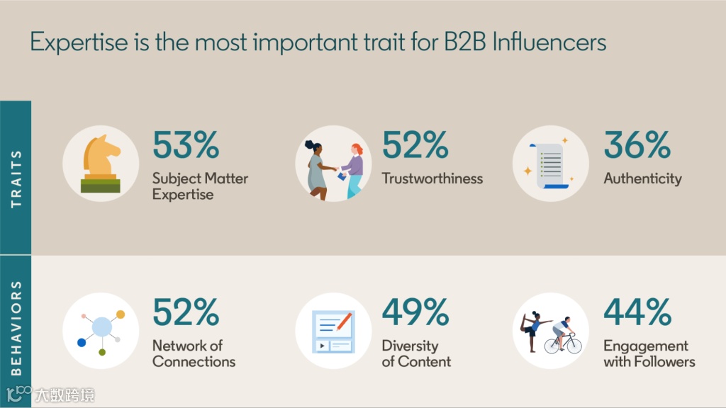 值得信赖是关键:同样占据52%的重要性,红人的可信度是构建长期合作关系的基石。在B2B营销中,信任是促成交易的关键,红人需通过持续的专业输出和诚信行为,建立并维护这一信任。