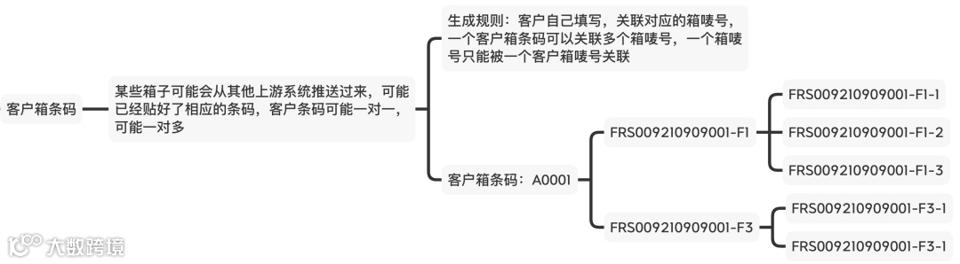除此之外,如果客户自己决意要贴自己的「箱SKU」条码,让仓库根据这个「箱SKU」条码来拣货、出库,系统也可以引入一个「客户箱条码」来关联这些箱子。通过客户自己的箱条码来寻找对应的箱类型号和箱唛号,既能满足客户下出库指令的要求,也能让仓库根据指令找到相应的箱子,且规避了单品管理带来的繁琐操作。