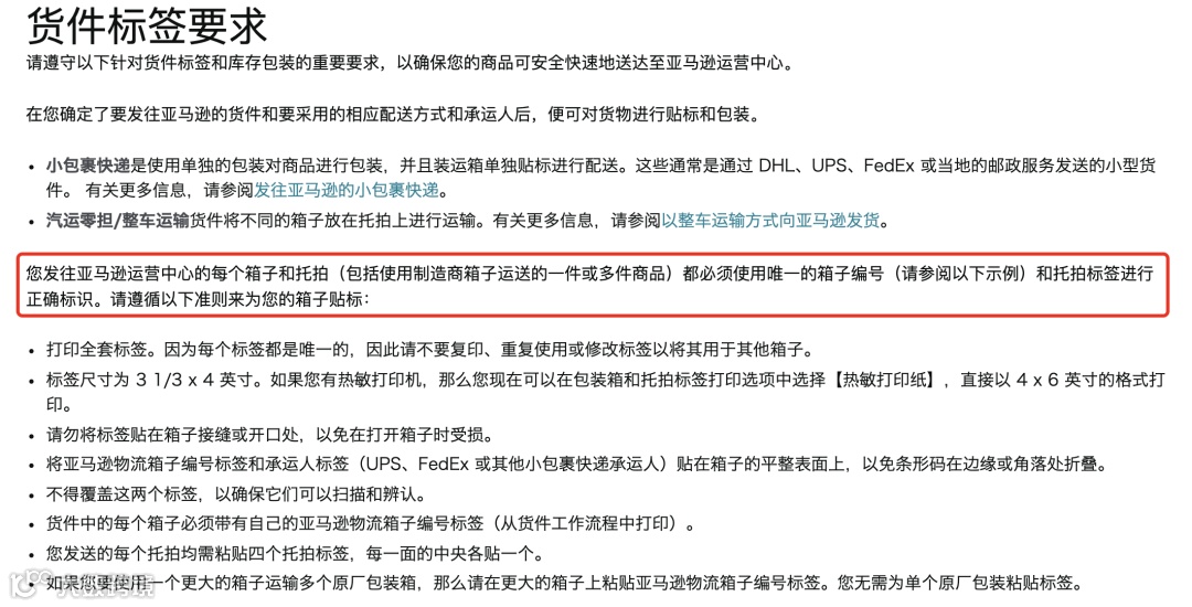 箱唛是行业比较通俗的叫法,具体是怎么传出来的我也不太记得了,从亚马逊帮助中心来看,中文的翻译应该是叫箱子标签,也有一些人称之为外箱标,其实指代的都是箱子外部贴的标签,类似于下图: