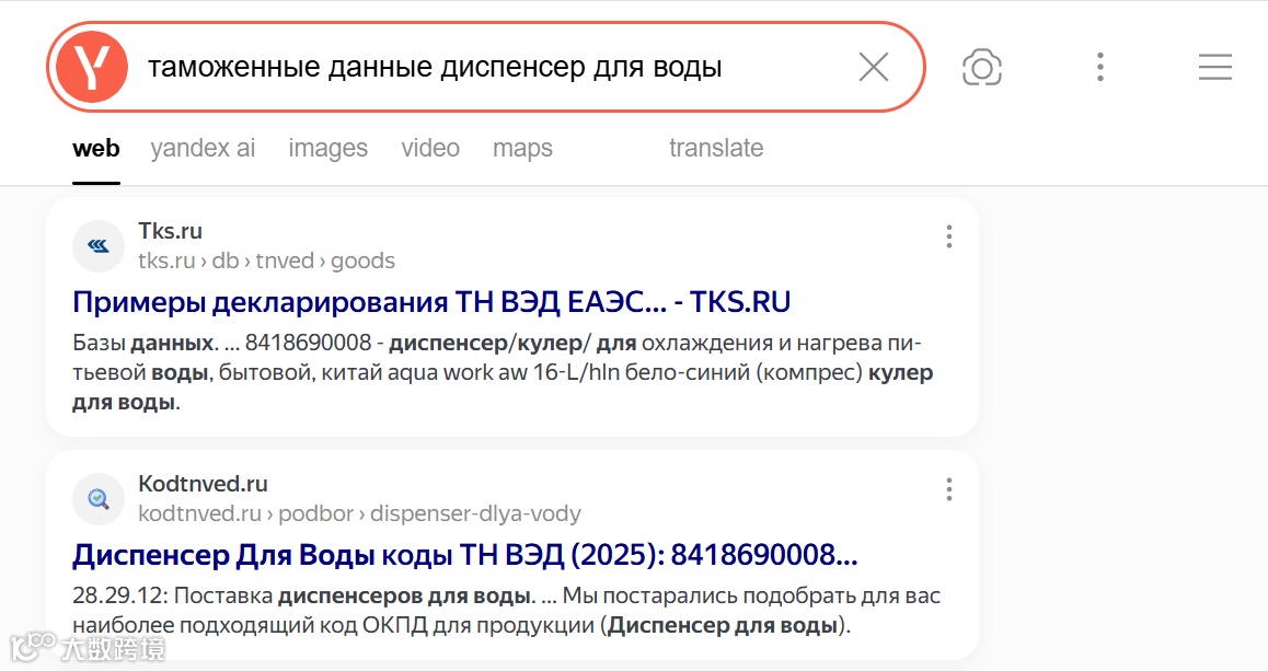 搜索关键词“таможенные данные(海关数据)+ 产品名”,即可查看目标产品的进出口企业信息