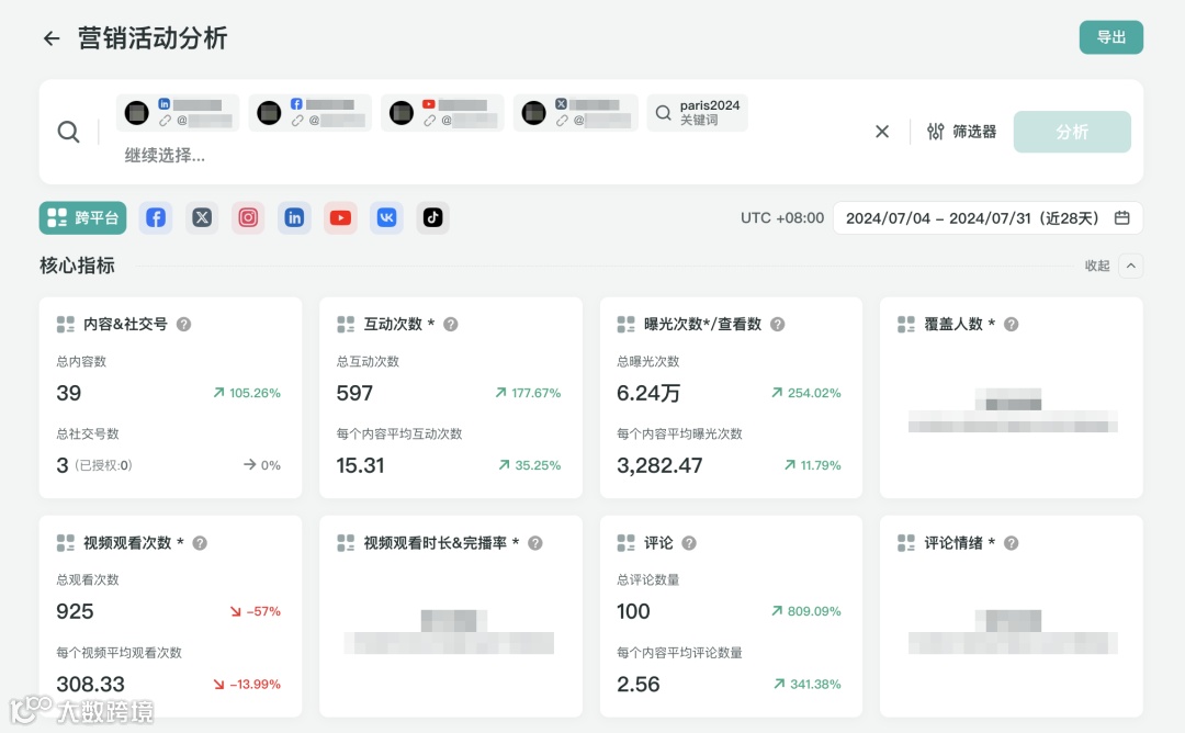 然而,面对四年一次的难得营销机会,品牌的奥运营销活动能否达到甚至超出预期目标,仅有热情和努力是不够的,对于海外社媒运营来说,还需要跨平台的大数据收集、监测和分析能力这个“摘金夺银”利器。通常来说,营销活动分析工具是让品牌快速具备这一能力的一个有效助力。