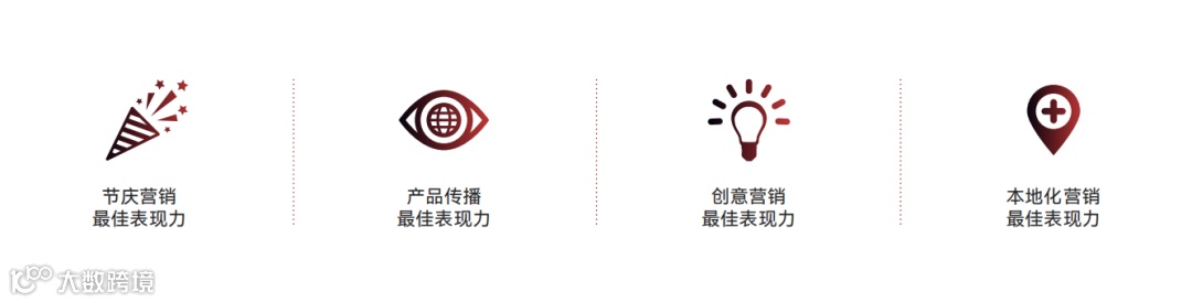 同时,我们关注积极通过各类营销方式和手段进行高质量品牌建设和品牌国际影响力打造的成功案例,设立了涵盖节庆营销、产品传播、创意营销和本地化营销的四个“最佳营销表现力”奖项评选。