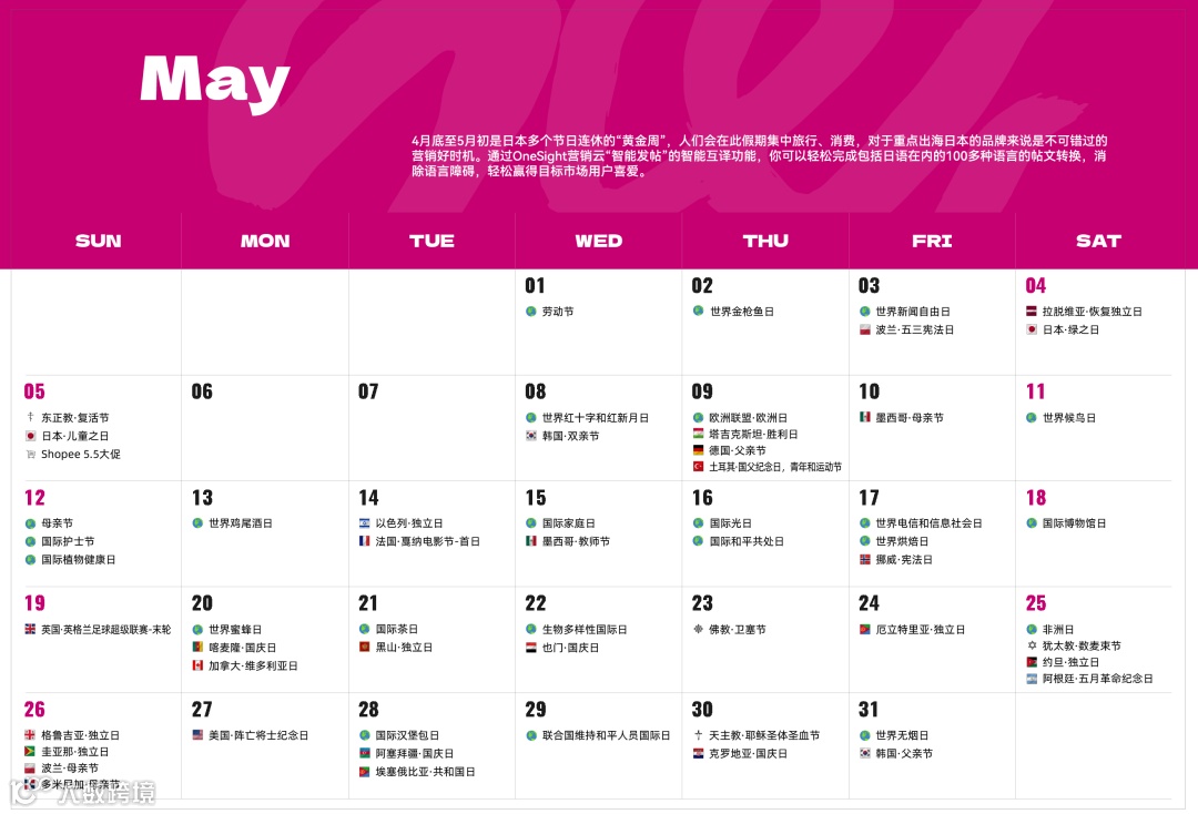 不同的节庆日意味着不同的受众群体的触达和传播,出海品牌可以有选择的参与和善加利用,结合自身品牌特色,凭借优质的素材和创意,让这些节日充分发挥品牌传播和营销价值。