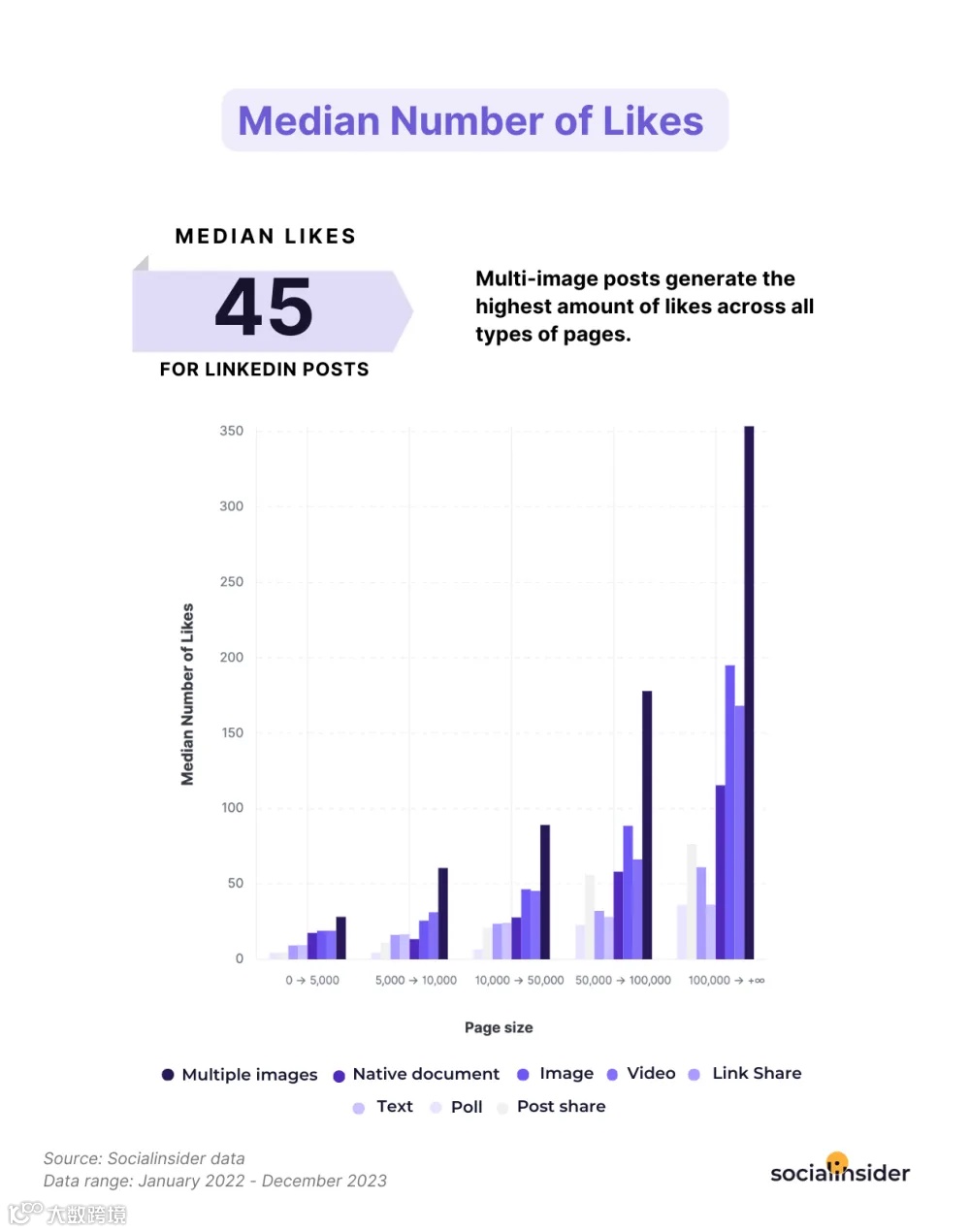 根据2024年的LinkedIn基准数据,多图像帖子在参与度方面处于领先地位。与其他帖子类型相比,多图帖产生了大量的参与度。特别是当多图帖配以简短的标题(19个字以下)时,其参与率更是显著提高。品牌应考虑利用这一趋势,结合吸引人的视觉元素和简洁有力的标题,来创建高参与度的内容。