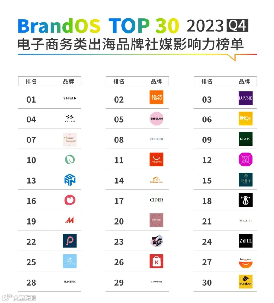 Jurllyshe成功上榜2023Q4《BrandOS 出海品牌社媒影响力榜单》的“电子商务”细分榜单。