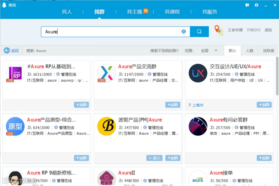 关于聊天工具和平台,主要是推荐大家多试试QQ的群搜索功能,尽管现在大家不怎么用QQ了,但是它在找资源方面依然具有很显著的优势。