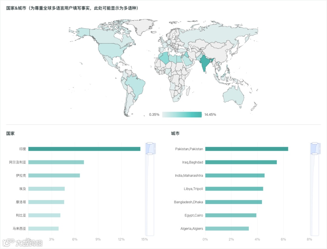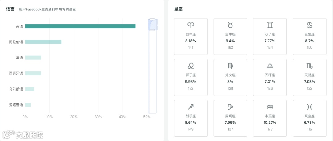 1.内容创意:新品牌可以通过用户调查、行业趋势分析和内容测试,为社交媒体平台创作个性化内容,这样的内容更能吸引目标受众。例如通过制作用户感兴趣话题的系列视频、使用AR等新技术的互动贴文或与用户互动的投票活动,引发用户的兴趣和参与度。通过OneSight营销员的“受众画像”功能,可以洞察内容互动人群的特征,从而制定更好的内容策略和广告策略。其中,受众基础画像包括受众性别、年龄、国家及城市、语言、星座等: