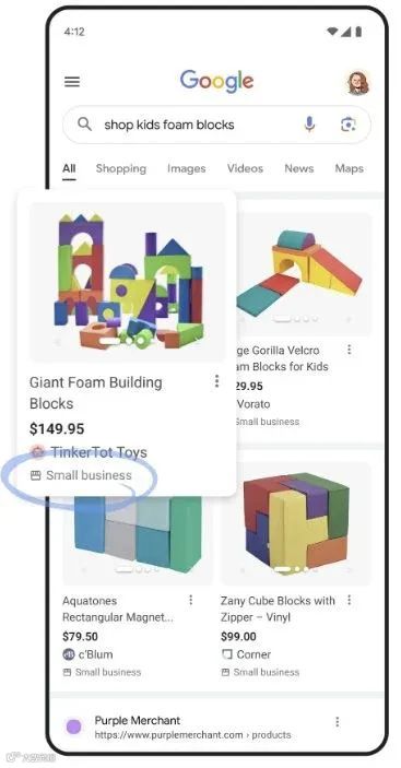 该功能是为中小企业在搜索结果中添加专属标签,这将有助于提升中小企业的销量。该功能的支撑数据在于Google表示,84% 的人热衷于支持小型本地企业,而新标签可以直接标注出这些小企业来获得更直接的支持。