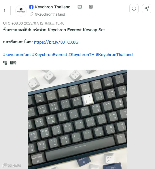 而从OneSight营销云后台收集的Keychron地域市场主页可以发现,其在泰国、韩国、阿根廷、印度尼西亚、印度、菲律宾等国也设置了社交媒体主页并有序运营中。