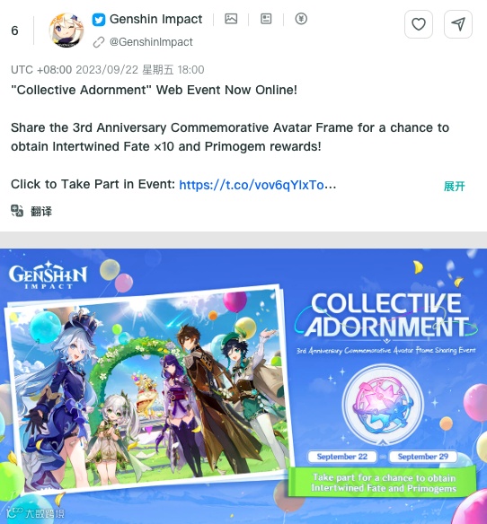 近日,《原神》迎来了三周年的特殊时刻。在游戏内策划各类活动的同时,《原神》也为社交媒体专门设计了一次互动活动。