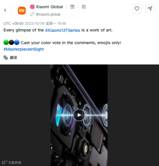 近日,小米在其Instagram全球页上发布了一张展示新机型的视频。该视频中展示了绿、黑、蓝三种不同的配色,并邀请用户通过发送不同的颜色表情来表达自己的喜好。