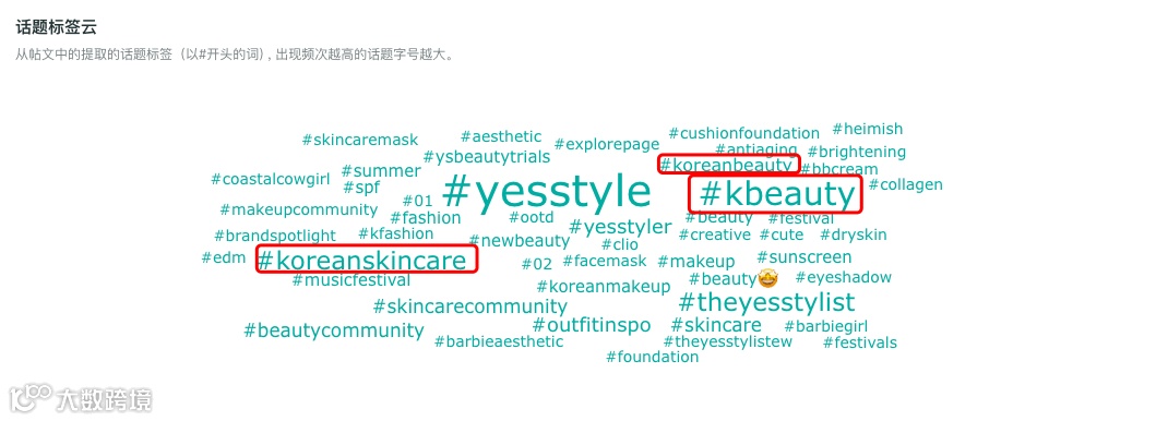 可以发现,除了自身的品牌名之外,其在Instagram帖子中最常使用的话题标签还包括#kbeauty、#koreanskincare等直接与韩流时尚相关的内容。