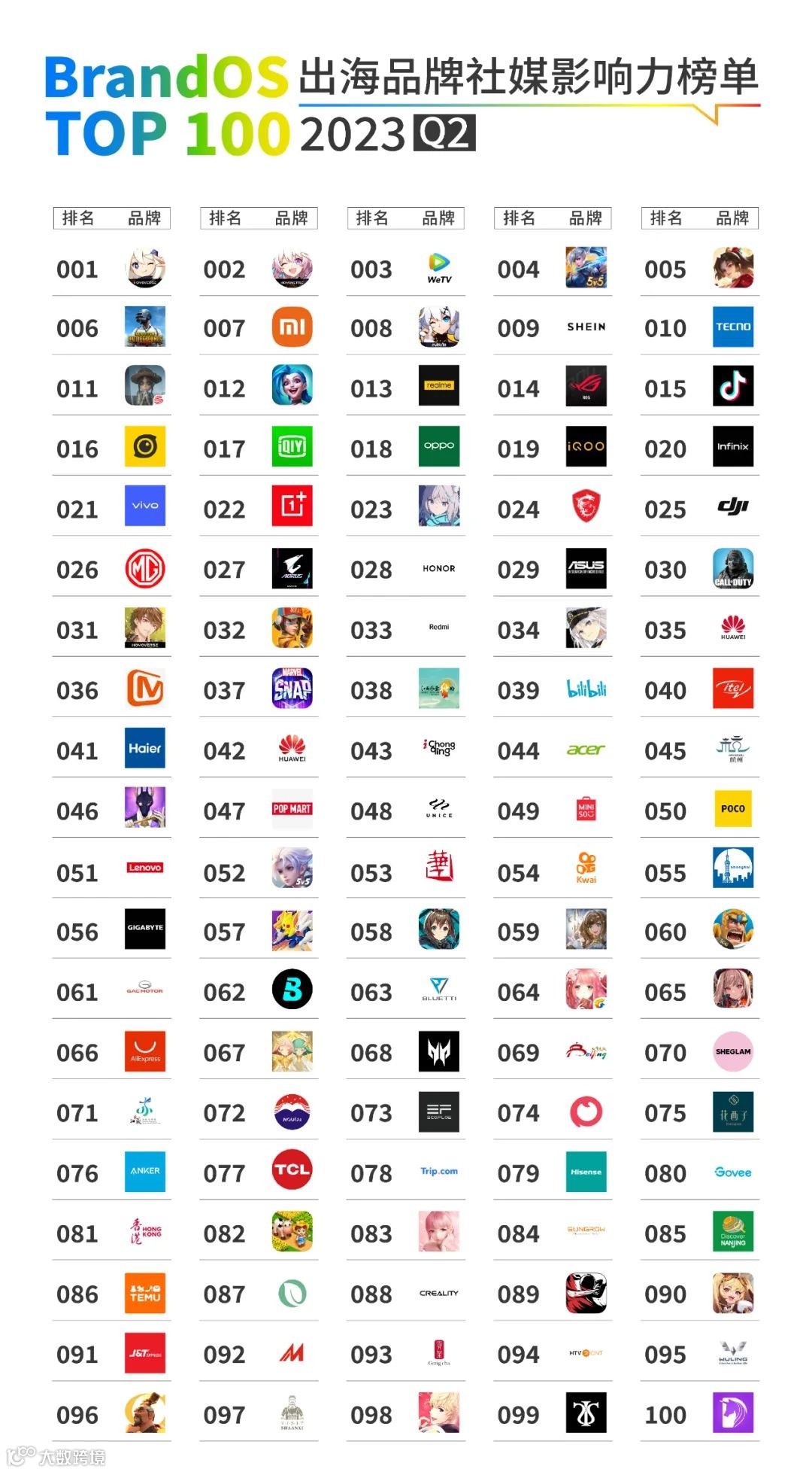 而上述两个品牌之外,在《2023Q2 BrandOS出海社媒影响力榜单》的总榜及电子商务、消费电子、工业制造、游戏、应用类(非游戏)、旅游服务及大细分行业榜单中还有更多令人眼前一亮的出海品牌。