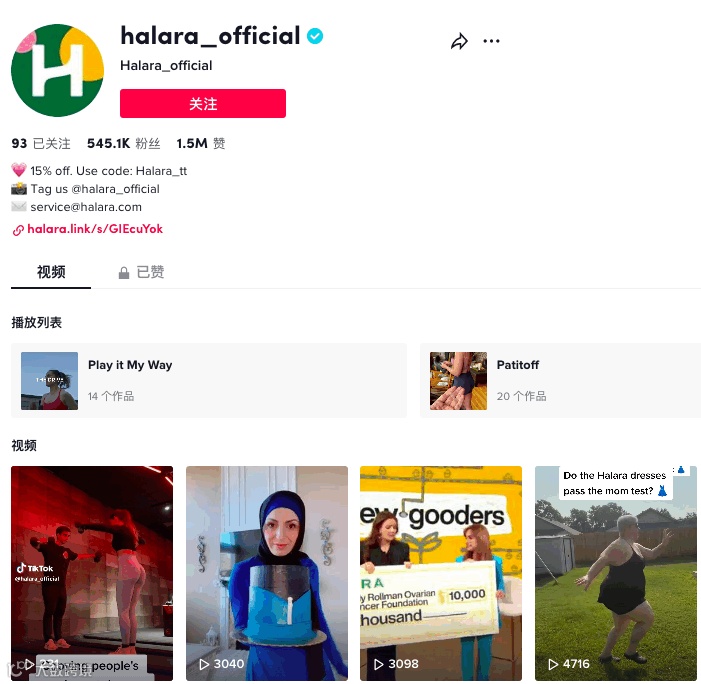 而在TikTok上,Halara的全球页拥有54.51万粉丝,Q1周平均发帖量为12.43,内容主要为Halara运动休闲服饰的穿搭种草、变美技巧以及优质的UGC内容的搬运。