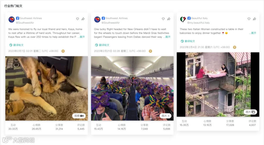 海外社交媒体上,不乏具有鲜明特色,给人留下深刻印象的旅游服务类帖文,都获得了较好的传播及互动效果: