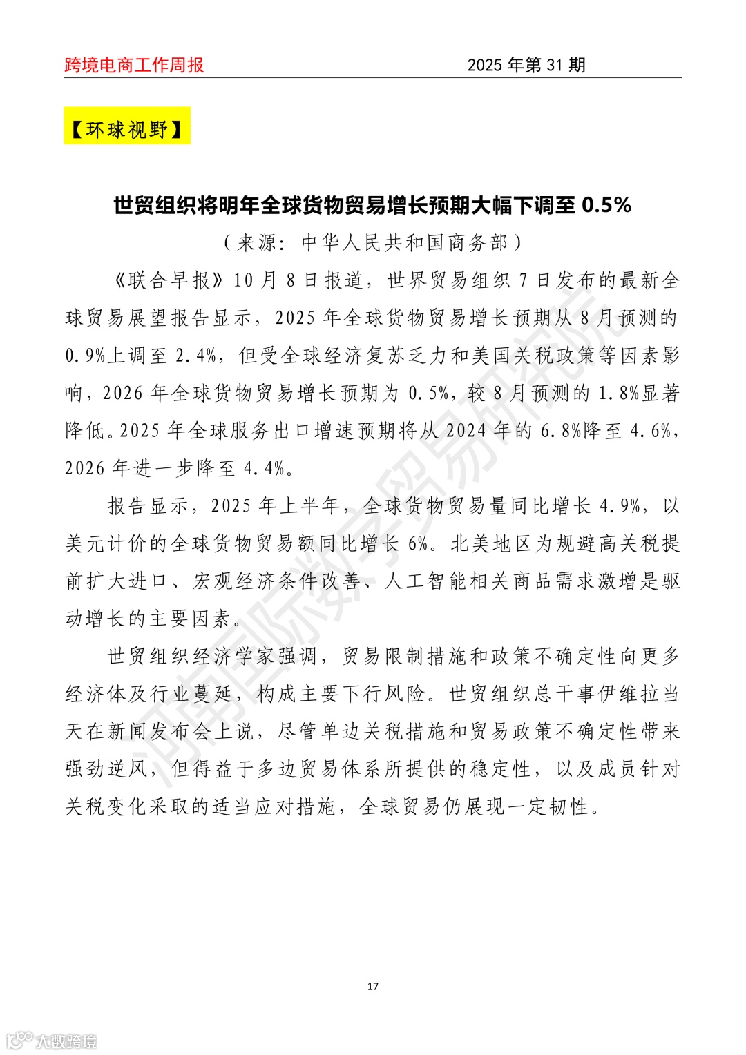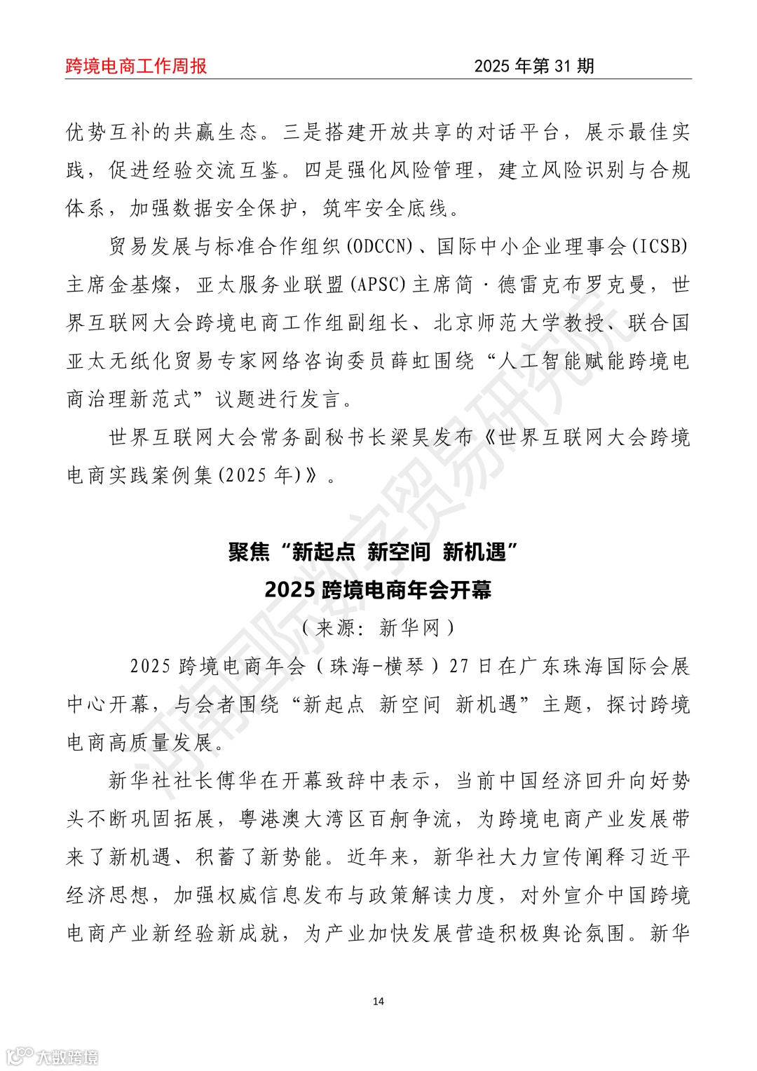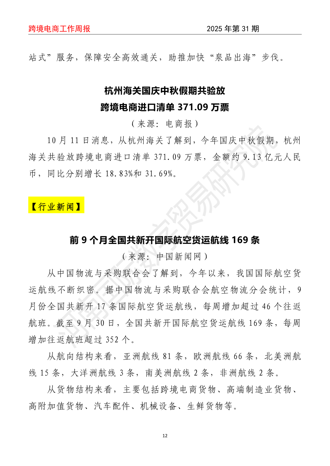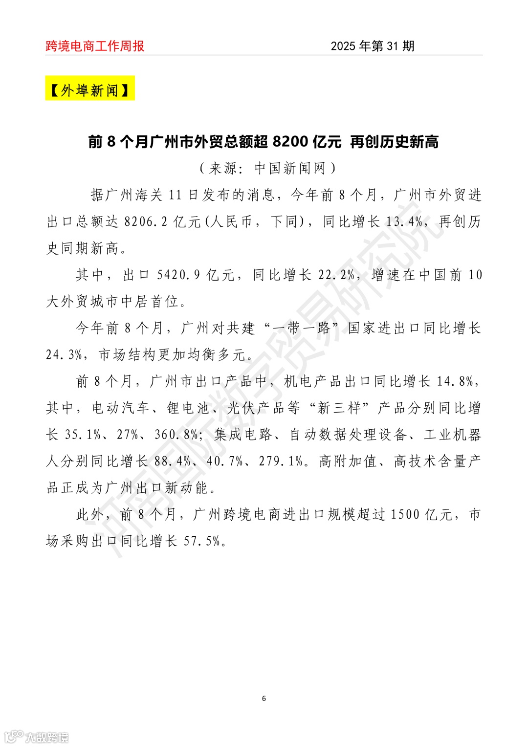 2025年第31期(2025/09/27—2025/10/11),跨境电商领域又发生了哪些事件,以下是河南国际数字贸易研究院为大家带来的本周外贸进出口、跨境电商平台、服务商及各地跨境电商最新动态回顾。