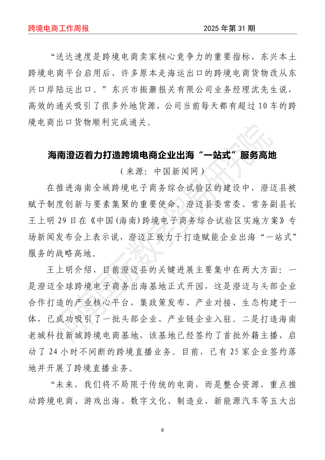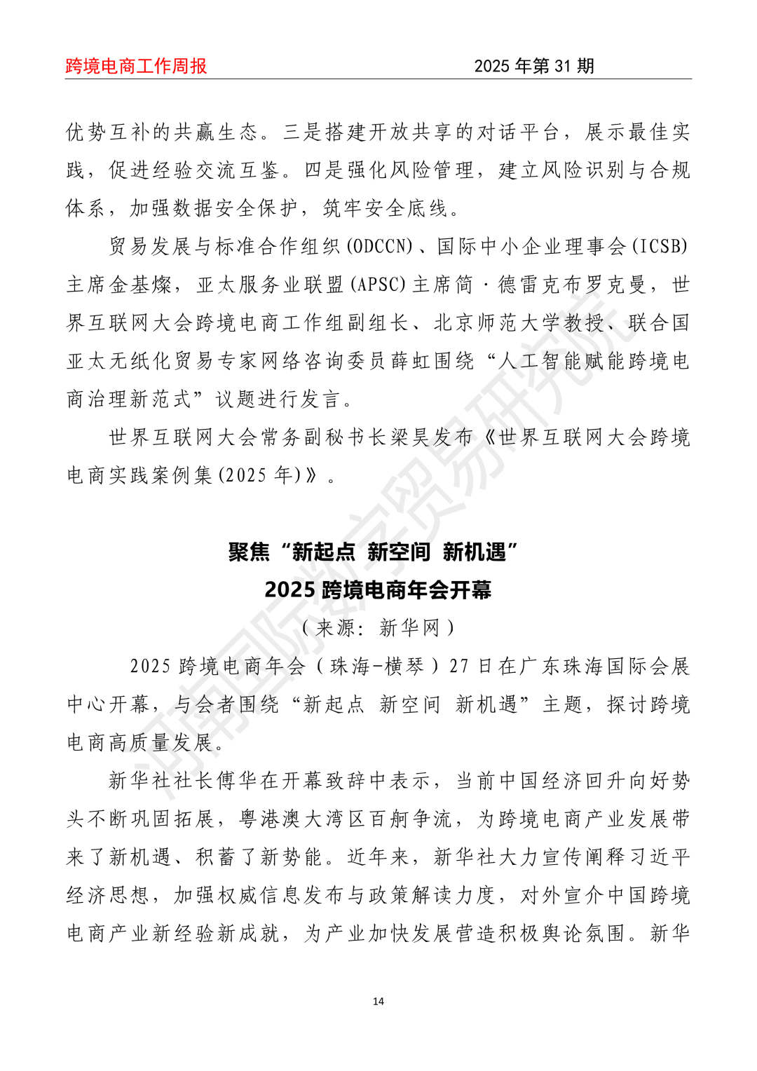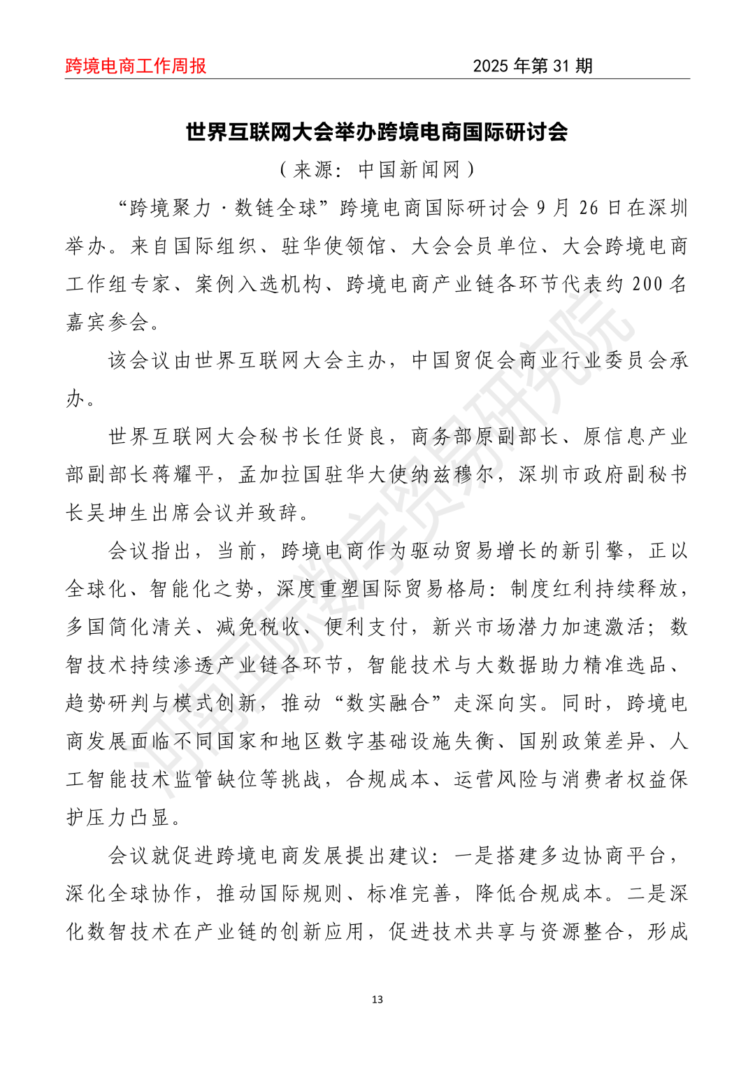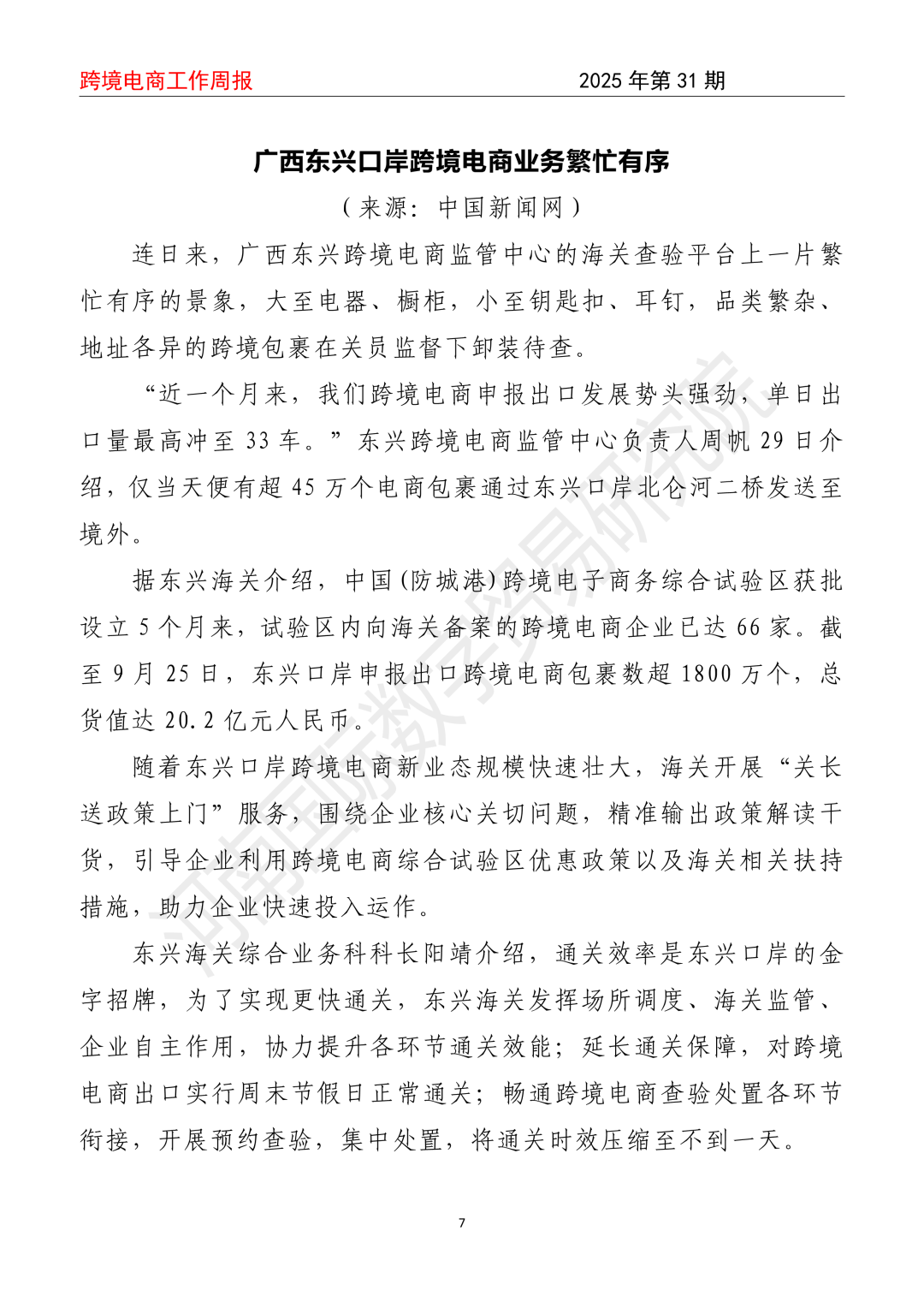 2025年第31期(2025/09/27—2025/10/11),跨境电商领域又发生了哪些事件,以下是河南国际数字贸易研究院为大家带来的本周外贸进出口、跨境电商平台、服务商及各地跨境电商最新动态回顾。